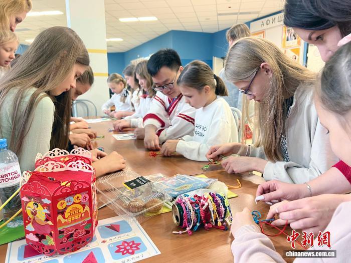 當(dāng)?shù)貢r(shí)間9月27日,“月滿華誕 同心共圓”中俄人文交流活動(dòng)在莫斯科548學(xué)校舉行。圖為俄羅斯學(xué)生參加中華文化互動(dòng)體驗(yàn)活動(dòng)。中新網(wǎng)記者 田冰 攝