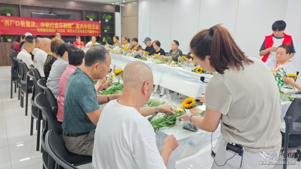 西廠口社區(qū)中秋活動,居民制作鮮花禮盒。 通訊員供圖