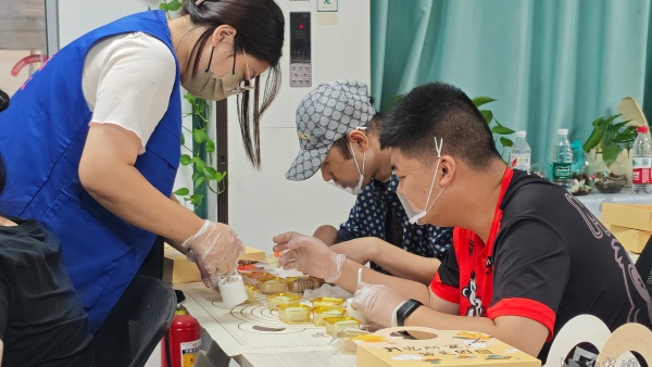 街道陽光家園學(xué)員與愛心志愿者一起制作冰皮月餅。 通訊員供圖