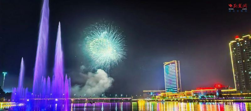 荊楚網(wǎng)(湖北日報網(wǎng))訊(記者 胡小軍 通訊員 吳滕鈺)10月2日晚,英山縣城區(qū)一河兩岸霓虹閃爍,親水步道上鮮艷的國旗迎風(fēng)飄揚(yáng),處處洋溢著喜慶熱烈的節(jié)日氣氛。大別山文學(xué)廣場周圍成為縣城熱度最高的地區(qū),上萬名市民、游客從四面八方匯集于此,大家翹首以盼,提前拿出手機(jī),選好角度,用鏡頭定格即將開始的視覺盛宴。