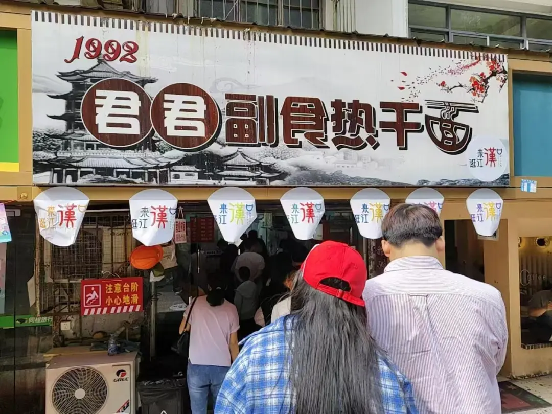 優(yōu)化營商環(huán)境,關(guān)鍵要讓小店輕裝上陣。作為江漢區(qū)碳水文化的重要符號(hào),君君副食曾受限于門面窄小,客流量大時(shí)顧客只能站著吃、蹲著拌,體驗(yàn)不佳等各類問題。街道了解情況后主動(dòng)靠前,聯(lián)動(dòng)相關(guān)部門爭(zhēng)取支持,既保留了老店小而美的煙火氣,又通過合理規(guī)劃提升了經(jīng)營舒適度。如今,游客順著“漢口必吃榜”“來漢口 逛江漢”的推薦牌來打卡,周邊上班的白領(lǐng)順路打包,小店日均客流更穩(wěn)定,口碑也越傳越遠(yuǎn)。