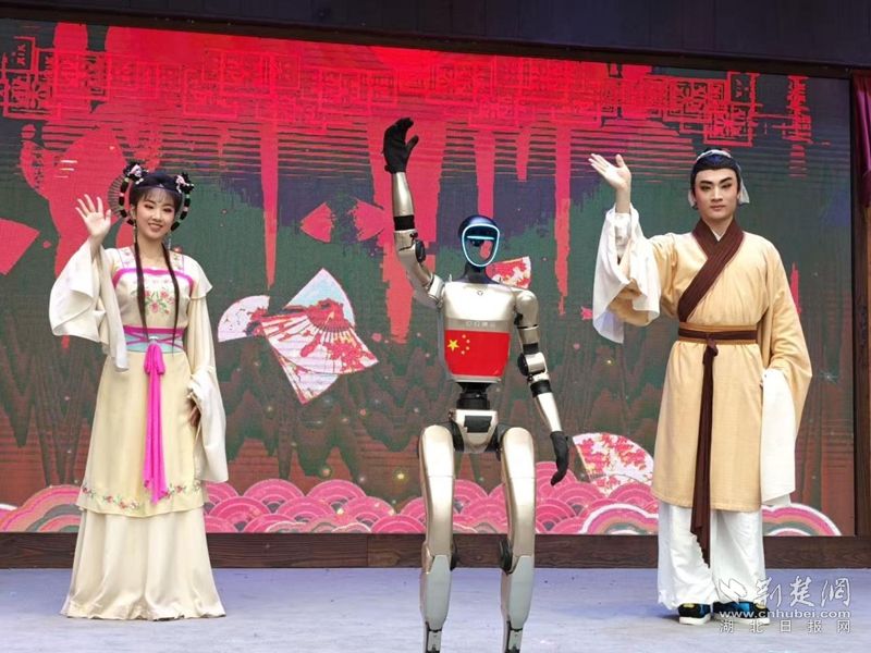 荊楚網(wǎng)(湖北日?qǐng)?bào)網(wǎng))訊(通訊員王晶、費(fèi)留燦)國(guó)慶中秋假期,在黃梅縣東山問梅村,當(dāng)黃梅戲《女駙馬》的經(jīng)典唱段響起,機(jī)器人踩著婉轉(zhuǎn)唱腔靈活擺臂、轉(zhuǎn)身,復(fù)刻戲曲身段的韻味;戲腔未落,身著傳統(tǒng)獅頭裝扮的機(jī)器狗躍至臺(tái)前,跟著鼓點(diǎn)騰躍撲閃,鬃毛翻飛間盡顯靈動(dòng),引得游客紛紛舉手機(jī)拍攝,鏡頭緊追這些“特殊演員”。