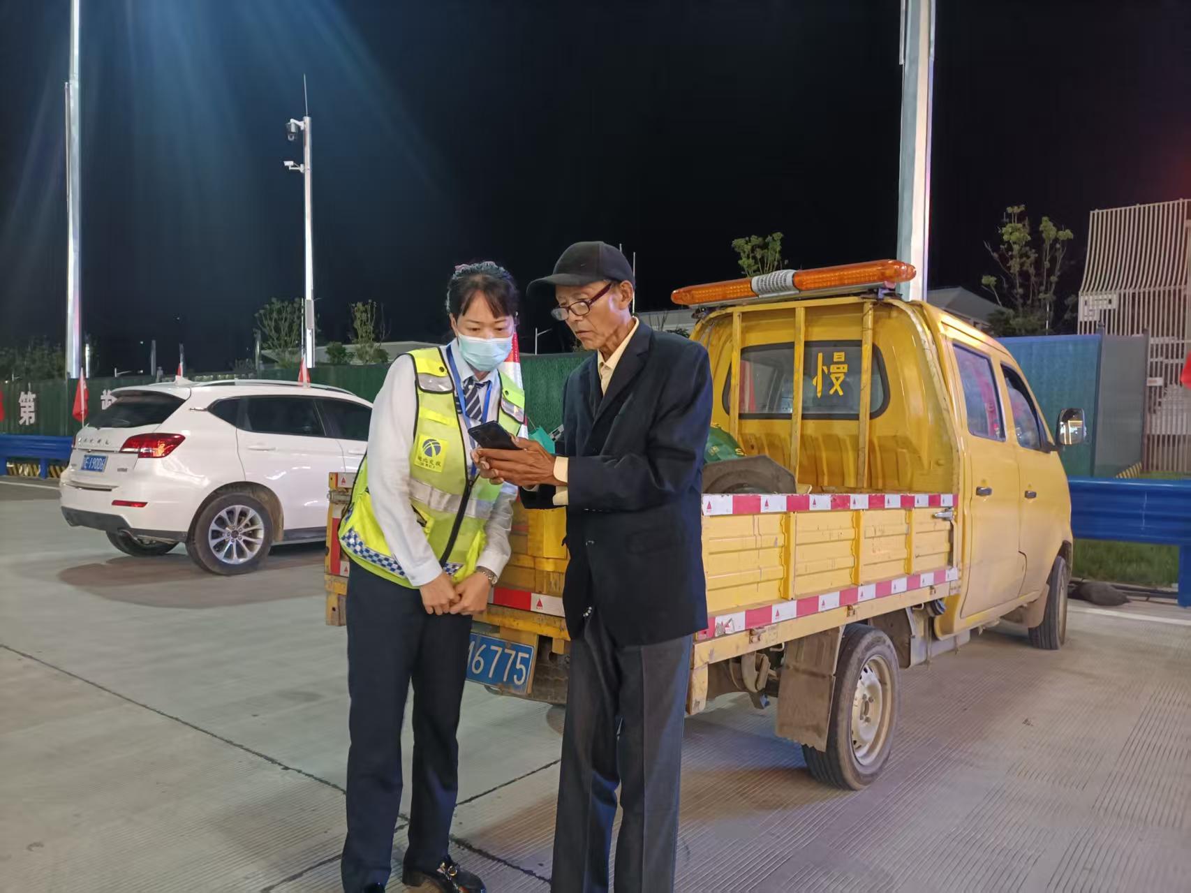 當天凌晨2時許,一位老人茫然地站在孝感收費站廣場上,神情低落,顯得不知所措。正在外場巡邏的收費班長王燕玲發(fā)現(xiàn)了這一情況,便主動上前詢問。