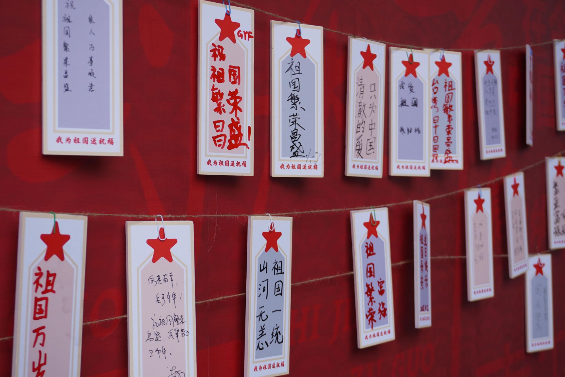 祝福傳遞,匯聚萬千心聲: 景區(qū)出口處的“我為祖國(guó)送祝?!笨ㄆ瑝ξ姸嘤慰蛥⑴c。一張張寫滿真摯祝福的卡片,匯成了對(duì)祖國(guó)母親的深情告白墻。