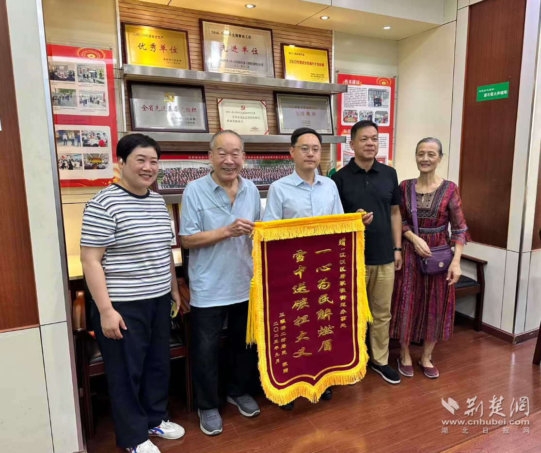 10月10日上午,武漢三眼橋二村52-54號(hào)的居民代表手捧一面寫有“一心為民解燃眉,雪中送炭擔(dān)大義”的錦旗,走進(jìn)江漢區(qū)唐家墩街道辦事處,用最樸實(shí)的方式表達(dá)他們的感激之情。
