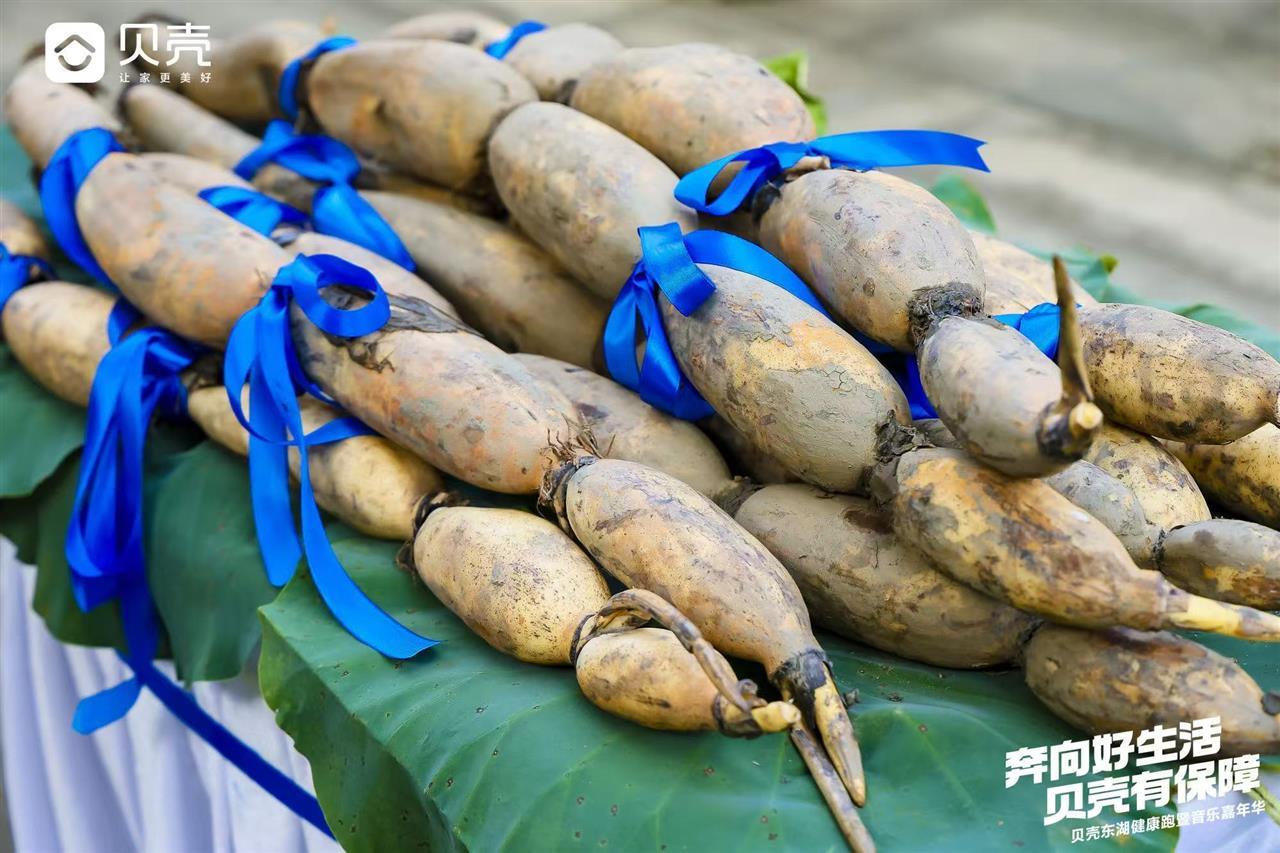 有趣的是,本次比賽為前三名選手準(zhǔn)備了迪卡儂山地自行車(chē)、王一博同款SKG腰部按摩儀器、Artsmith筋膜槍深層肌肉按摩器外,還向他們特別贈(zèng)送了1根長(zhǎng)約1.6米的蓮藕。這也是當(dāng)天剛從藕塘里挖出的新鮮野藕。這一充滿(mǎn)特色的獎(jiǎng)品,寓意著“跑在東湖,暖在胃里”,讓跑友們?cè)谙硎苓\(yùn)動(dòng)快樂(lè)的同時(shí),也能感受到濃濃的江城風(fēng)味。