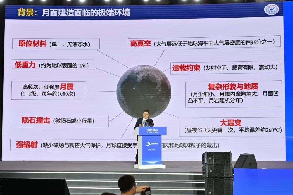 華中科技大學(xué)丁烈云教授的報告“月面建造的科學(xué)技術(shù)挑戰(zhàn)”,緊扣深空探測的時代命題,深刻剖析了月面建造在選址、結(jié)構(gòu)、材料、性能等六個方面的挑戰(zhàn),既展現(xiàn)了中國在深空建造領(lǐng)域的前瞻布局,更讓現(xiàn)場觀眾感受到科研工作者為航天夢矢志攻關(guān)的決心。