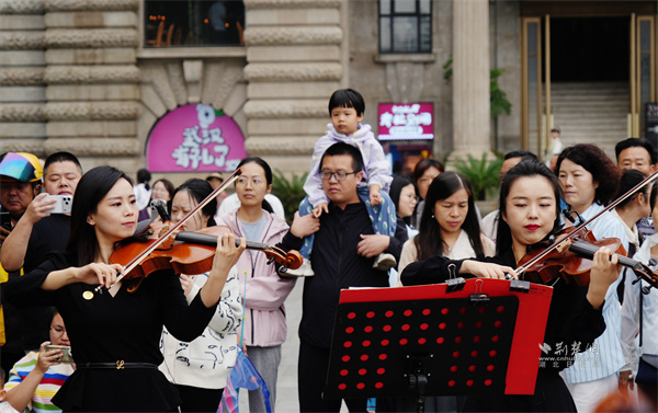 來自阿曼的游客Murad Al Balushi難掩興奮,特意讓朋友為自己和樂團拍下合影。“這場演出太精彩了,現(xiàn)場的氛圍讓人沉醉,武漢街頭的這份浪漫很獨特。”Murad Al Balushi表示。來自廣東珠海的游客曹先生,剛下火車便將江漢路作為旅途第一站,而這場音樂快閃成為他此行的意外之喜。“高雅音樂配上百年鐘樓的復(fù)古建筑,氛圍感直接拉滿,這趟旅行的開頭太完美了?!蔽錆h市民李女士帶著家人在休息日出游,剛從公交站下車就被樂聲吸引,“本來就是隨便逛逛,正好帶著寶寶感受一下音樂氛圍?!苯瓭h大學大四學生小劉和朋友一同被這場音樂“快閃”所打動,拍下視頻發(fā)朋友圈和大家分享。她表示:“武漢這座城市越來越有活力,總能給人驚喜?!?/p>