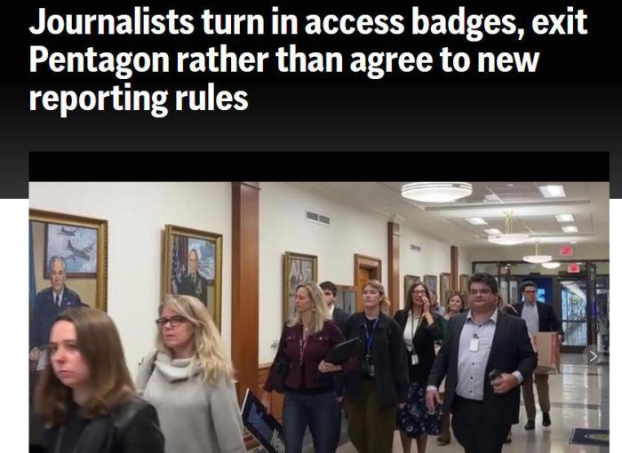 美國(guó)廣播公司(ABC)報(bào)道稱(chēng),當(dāng)?shù)貢r(shí)間15日下午4時(shí),隨著美國(guó)國(guó)防部設(shè)定的最后期限臨近,五角大樓的走廊里堆滿了文件箱,大約40到50名記者交出了證件后一起離開(kāi)。