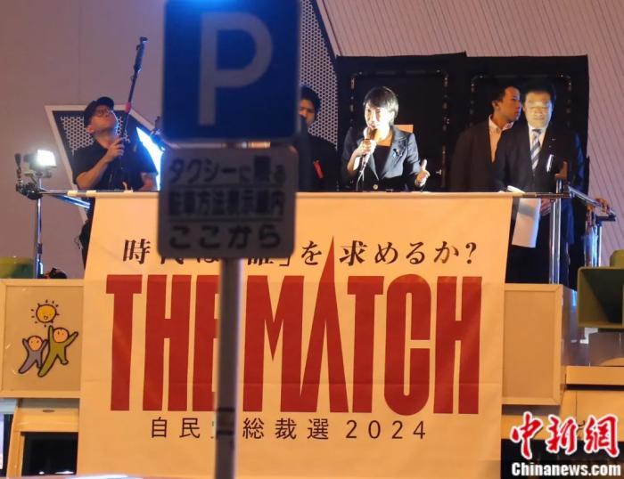 2024年,高市早苗作為自民黨總裁選舉候選人在東京發(fā)表演說。中新社記者 朱晨曦 攝