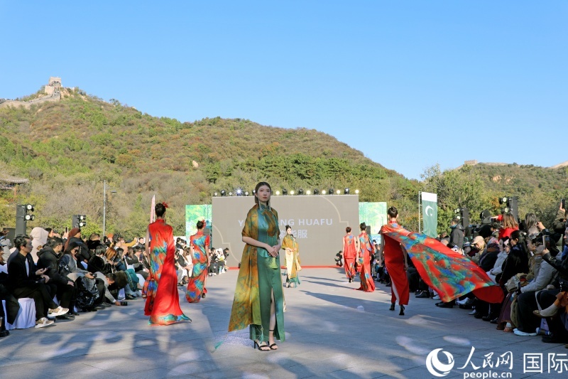 10月19日,由巴基斯坦駐華使館與中國國際文化傳播中心共同組織的中巴時裝秀在北京八達(dá)嶺長城舉行,中巴兩國官員、商界人士、媒體代表約200人出席活動。巴基斯坦設(shè)計(jì)師為本次活動設(shè)計(jì)打造了融合中國和巴基斯坦兩國時尚風(fēng)格的系列服裝作品,由中巴兩國模特共同展示。巴基斯坦駐華大使卡里爾·哈什米在現(xiàn)場表示,今年恰逢巴基斯坦國家領(lǐng)導(dǎo)人首次參觀八達(dá)嶺長城六十周年,因此在長城舉行時裝秀活動意義非凡。(人民網(wǎng)記者趙益普攝影報道)