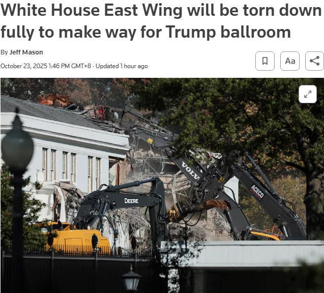 白宮東翼被拆的舉動(dòng)持續(xù)引發(fā)爭(zhēng)議。