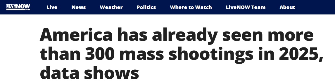 中國(guó)日?qǐng)?bào)網(wǎng)10月23日電 據(jù)美國(guó)??怂筁IVE Now即時(shí)新聞報(bào)道,非營(yíng)利機(jī)構(gòu)“槍支暴力檔案”的數(shù)據(jù)顯示,自2025年1月1日至10月14日,美國(guó)共發(fā)生了340起除槍手外造成至少四人中槍的槍擊事件。