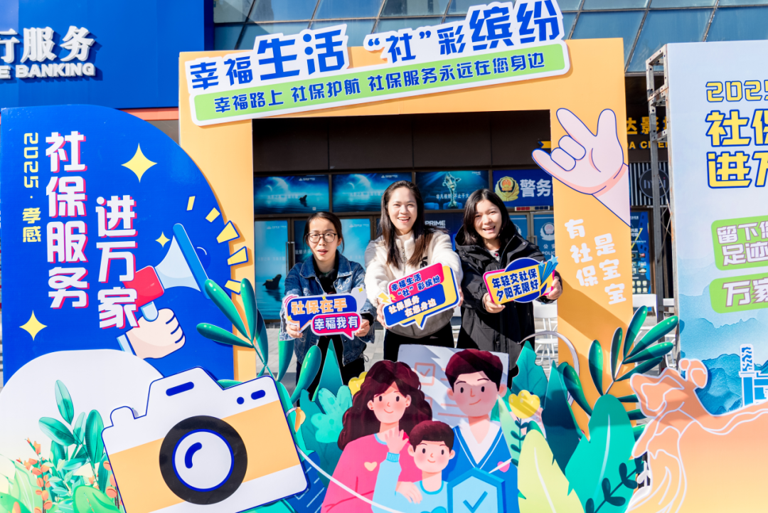 孝感市“社保服務(wù)進萬家”活動啟動儀式現(xiàn)場,年輕人在打卡點留下幸福笑臉。