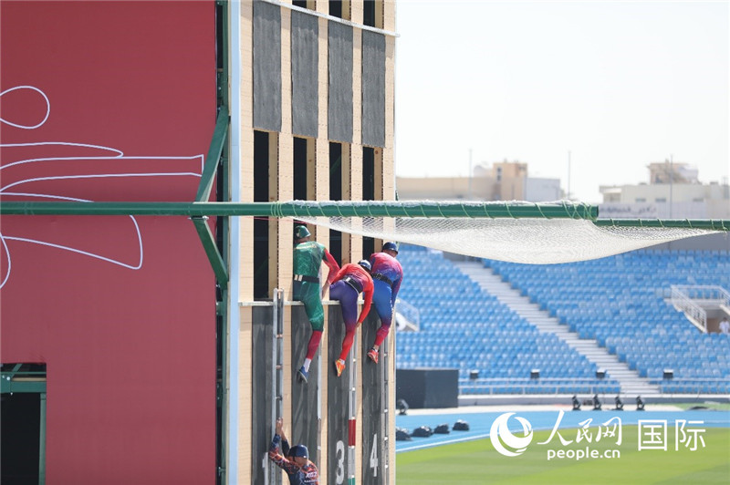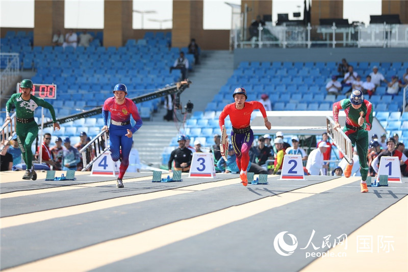 選手們正在進(jìn)行攀登掛鉤梯比賽。人民網(wǎng)記者 任皓宇攝