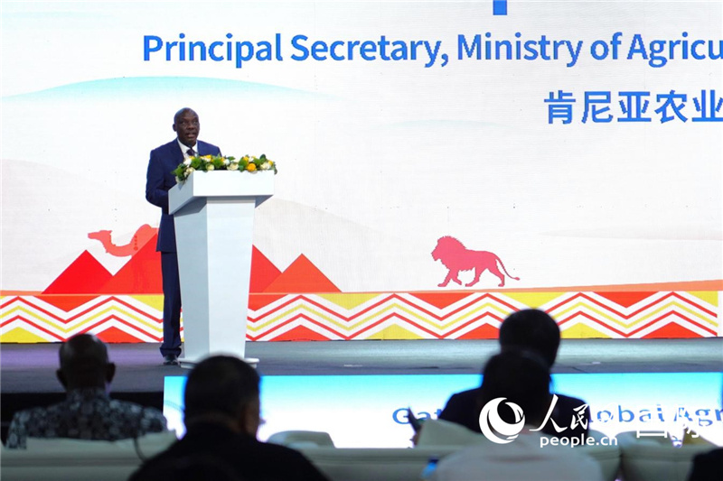 肯尼亞農(nóng)業(yè)與畜牧發(fā)展部常務(wù)副部長(zhǎng)保羅·基普羅諾·羅諾致辭。人民網(wǎng)記者 黃煒鑫攝