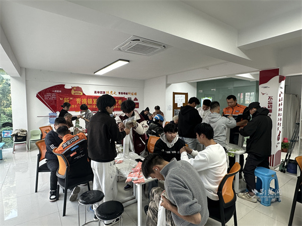現(xiàn)場(chǎng)采用“1+1”結(jié)對(duì)模式,即1名新就業(yè)群體成員與1名老年人協(xié)作。年輕人負(fù)責(zé)填充艾草,老年人則憑豐富的生活經(jīng)驗(yàn),指導(dǎo)填充節(jié)奏和套枕套的技巧,兩代人配合默契?!捌綍r(shí)送餐趕時(shí)間,很少和社區(qū)老人聊上幾句,今天才發(fā)現(xiàn)他們懂這么多生活技巧,太厲害!” 一位外賣(mài)騎手一邊小心將艾草填入枕套,一邊笑著感慨,身旁的老人則熟練幫他封口打結(jié)。