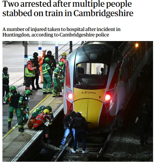 中新網(wǎng)11月2日電 據(jù)英國《衛(wèi)報》報道,當(dāng)?shù)貢r間11月1日,英國一前往劍橋郡亨廷登的火車上發(fā)生持刀行兇事件,已有兩人被警方逮捕。