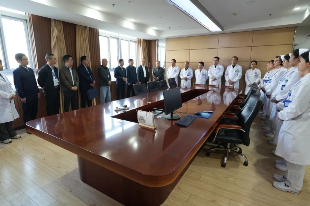 當(dāng)天清晨,醫(yī)院領(lǐng)導(dǎo)班子成員及相關(guān)職能科室負(fù)責(zé)人抵達(dá)新病區(qū),全程參與介入血管科的晨間交接班會(huì)議。領(lǐng)導(dǎo)們認(rèn)真傾聽(tīng)夜班與白班醫(yī)護(hù)人員關(guān)于患者病情、治療方案及護(hù)理重點(diǎn)的詳細(xì)交接,并對(duì)科室未來(lái)發(fā)展提出了殷切期望和明確要求。