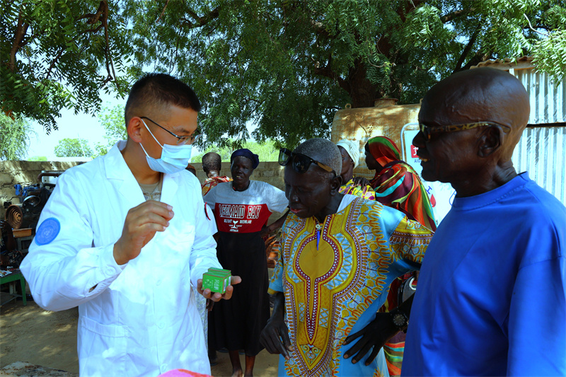 現(xiàn)場(chǎng),我維和部隊(duì)醫(yī)護(hù)人員為當(dāng)?shù)孛癖娞峁z查、診療和健康咨詢,發(fā)放針對(duì)感冒、蚊蟲咬傷、跌打損傷等13類4600余件常用藥品,發(fā)放宣傳手冊(cè)普及傳染疾病防護(hù)知識(shí),并為醫(yī)院更換、補(bǔ)充常用藥品和醫(yī)療耗材。