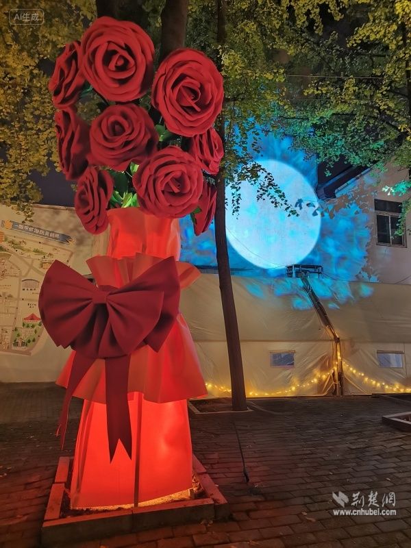 荊楚網(wǎng)(湖北日報網(wǎng))訊(通訊員 陳曉燕 周佳穎)11月5日,武昌區(qū)黃鶴樓街道后宰門街角一道獨特的風(fēng)景引人注目,一棵“永不凋零”的“愛之樹”絢麗綻放,樹上盛開的巨型玫瑰花與一旁的月球投影裝置相映成趣,與遠方的黃鶴樓共同構(gòu)成一幅詩意城市景觀。