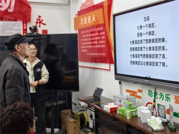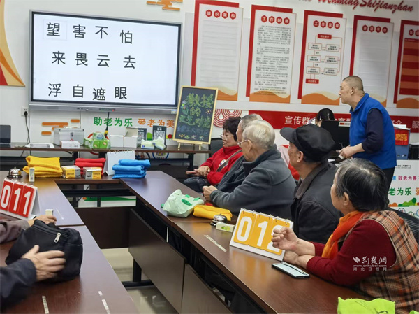 活動以繞口令熱身開場。曾講授量子力學的老教授們,此刻神情專注地逐字讀著"炮兵怕把標兵碰",略顯生澀卻認真的模樣,引得現(xiàn)場歡笑聲與掌聲不斷,氣氛瞬間活躍起來。