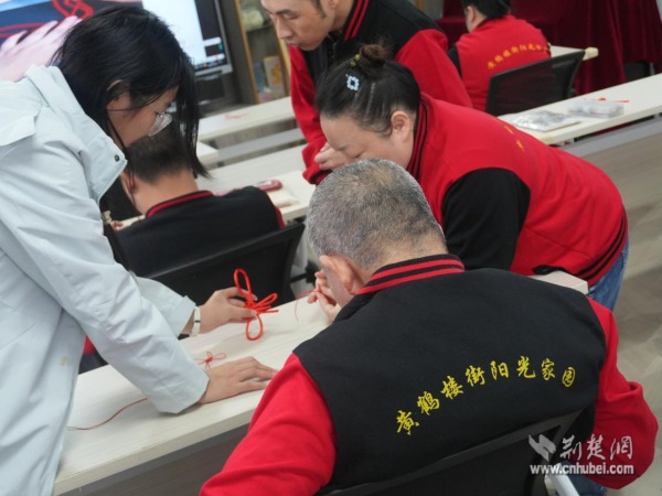 在中國(guó)結(jié)編織互動(dòng)中,志愿者手把手教學(xué)員編織寓意吉祥的中國(guó)結(jié)。編織過(guò)程既鍛煉了手部協(xié)調(diào)能力,又通過(guò)互幫互助增進(jìn)了彼此情誼,現(xiàn)場(chǎng)充滿歡聲笑語(yǔ)?;顒?dòng)尾聲,青年志愿者為每位學(xué)員送上自己親手制作的中國(guó)結(jié),傳遞美好祝福。