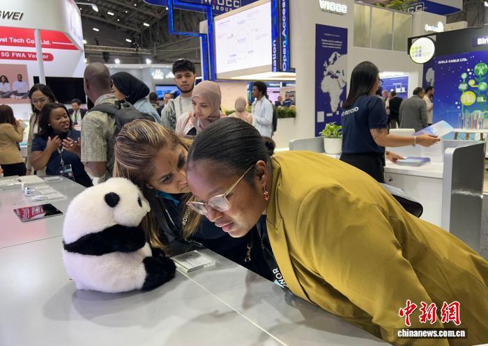 當地時間11月11日,第28屆非洲科技節(jié)在南非開普敦開幕。圖為與會嘉賓在中國企業(yè)展區(qū)了解接入人工智能系統的毛絨玩具。 中新社記者 孫翔 攝