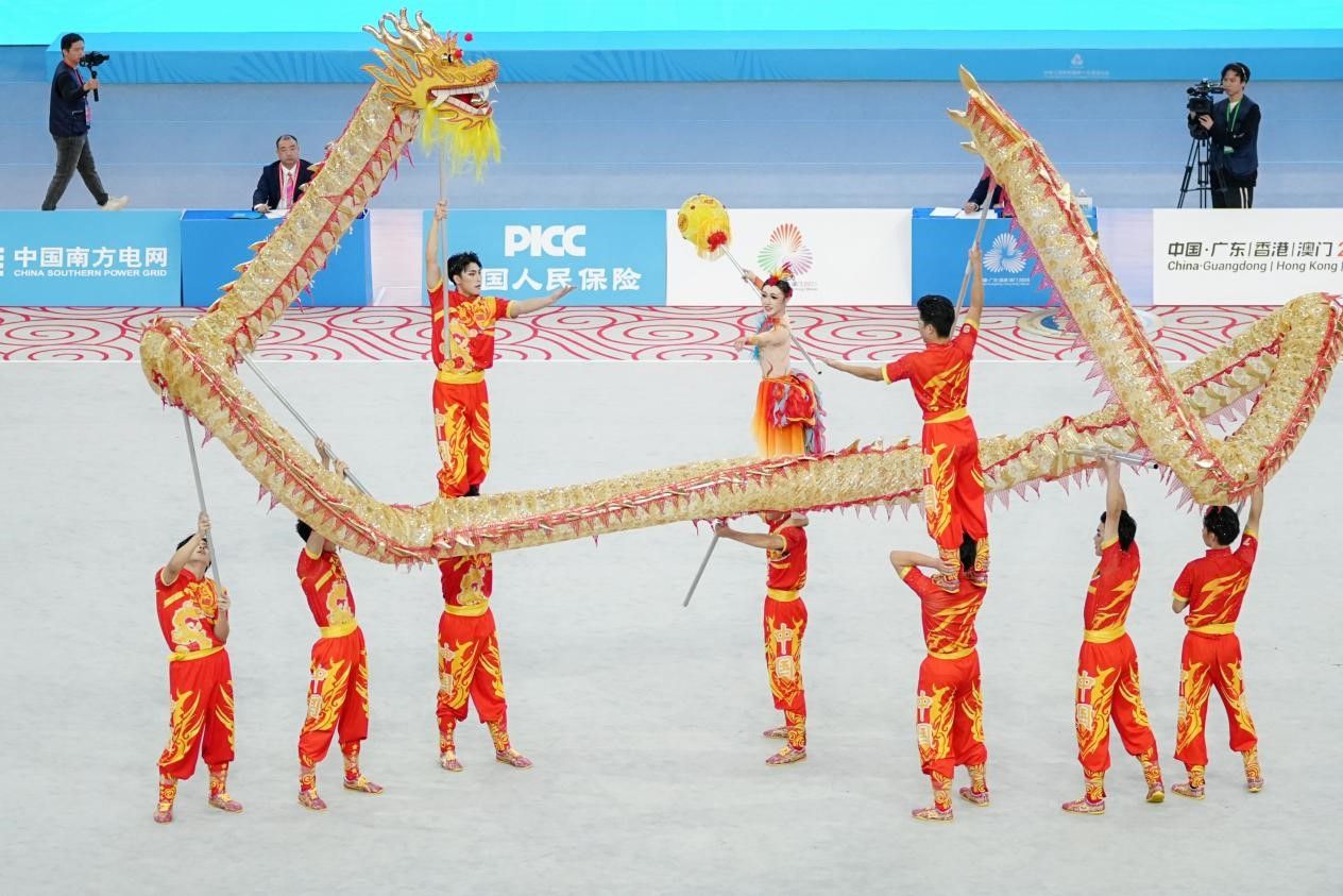 本屆全運會首次將舞龍舞獅列為群眾展演項目,賽事設南獅自選、南獅障礙、南獅傳統(tǒng)、舞龍障礙、北獅自選、舞龍規(guī)定、舞龍自選、彩帶龍自選等8個單元。在前期預賽中,我省組隊參加了6個項目的比賽,其中舞龍自選、舞龍規(guī)定、舞龍障礙、彩帶龍自選、北獅自選5個項目,以優(yōu)異成績拼進決賽。