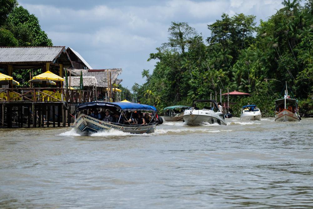 11月16日,在巴西北部城市貝倫,船只在河道中航行。新華社記者 王天聰 攝