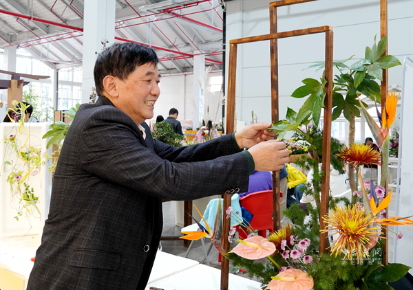 看一看、聽一聽,他們觀摩交流學(xué)花藝