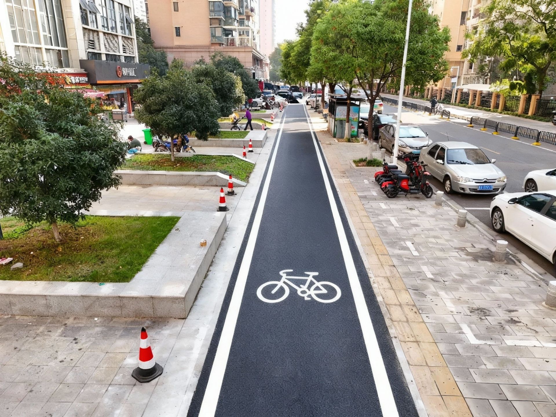 路面平整之后,還劃上了清晰的非機(jī)動(dòng)車(chē)道標(biāo)線,人車(chē)分流,騎行、步行互不干擾。同時(shí),為了防止機(jī)動(dòng)車(chē)占道,沿線還加設(shè)了8處阻車(chē)樁,機(jī)動(dòng)車(chē)再也不能“霸占”人行道了。