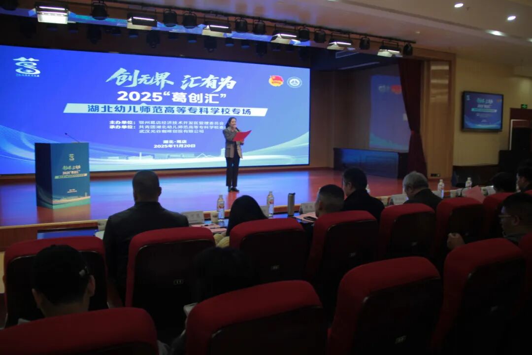 11月20日,由鄂州葛店經(jīng)濟(jì)技術(shù)開發(fā)區(qū)管理委員會(huì)主辦,共青團(tuán)湖北幼兒師范高等??茖W(xué)校委員會(huì)、武漢光谷咖啡創(chuàng)投有限公司聯(lián)合承辦的2025“葛創(chuàng)匯”湖北幼兒師范高等??茖W(xué)校專場路演活動(dòng)在學(xué)校報(bào)告廳成功舉辦。