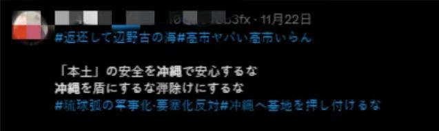 日本網(wǎng)友熱評“不需要高市早苗”“勿將沖繩當(dāng)作盾牌”,嚴(yán)正拒絕自己的家園成為潛在沖突的“盾牌”與“炮灰”,并強(qiáng)烈譴責(zé)日本政府“持續(xù)將美軍基地強(qiáng)加于沖繩的行徑”。