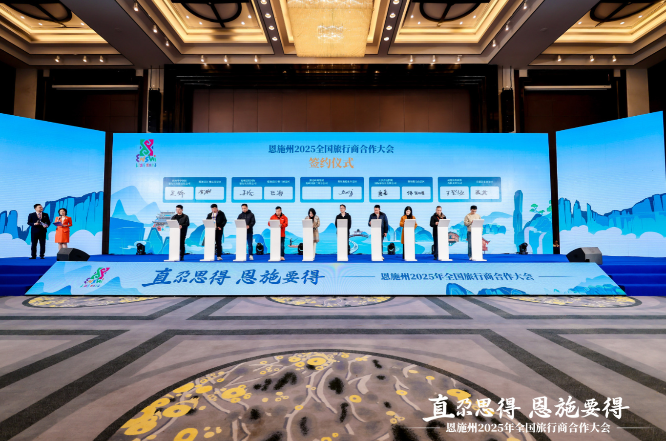 本次會上,現(xiàn)場達成戰(zhàn)略合作項目百余個,覆蓋景區(qū)聯(lián)票、旅游專線、酒店住宿、交通接駁等多個領域。來自內(nèi)蒙古、上海、青海等地的旅行商與恩施地接旅行社簽署了深度合作協(xié)議,預計2026年將為恩施輸送客源超百萬人次。與此同時,3000余塊恩施旅游電梯廣告覆蓋武漢三鎮(zhèn),“直尕思得 恩施要得”形象宣傳亮相江城夜景燈光秀。