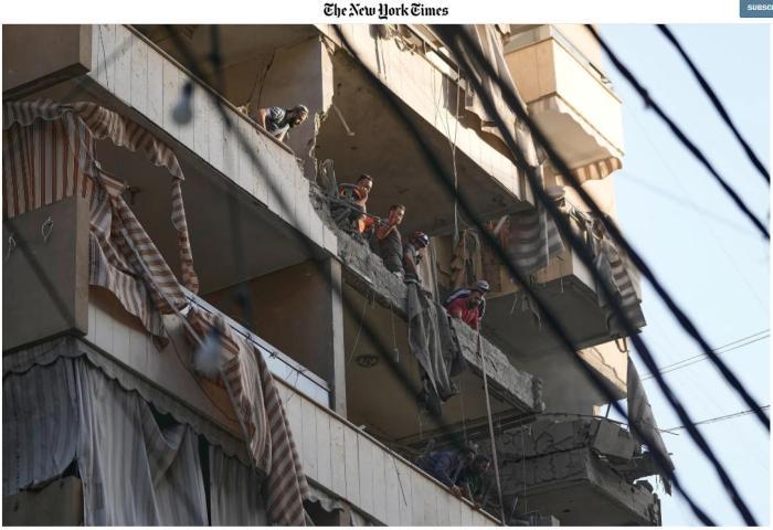 塔巴塔拜公寓遭空襲現(xiàn)場。圖/《紐約時(shí)報(bào)》