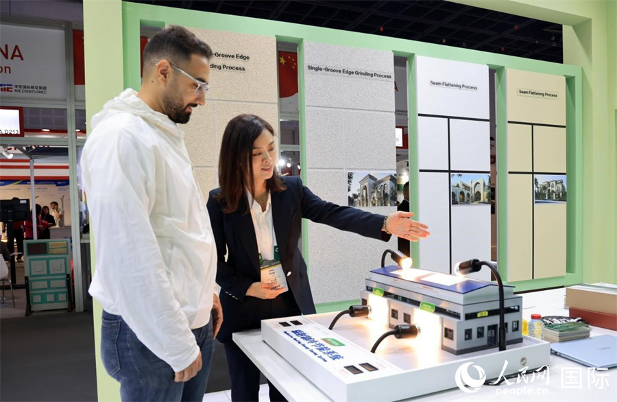 參展中企三棵樹(shù)介紹輻射制冷節(jié)能涂料。人民網(wǎng)記者 管克江攝