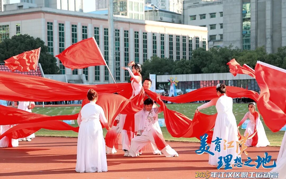 文藝演出環(huán)節(jié)同樣精彩紛呈。開場舞《美麗中國》以熱情舞步禮贊祖國;體育舞蹈《躍動未來》上演力量與美的碰撞;《活力江漢》歌曲串燒中,小歌手彭彥凱與武漢天使童聲合唱團帶來動人演唱,職工歌手聯(lián)袂獻唱《江漢四季》《相親相愛》,引發(fā)全場共鳴;千人工間操展演氣勢恢宏,全場配合呈現(xiàn)“I?JH”巨型畫面,將開幕式推向高潮。