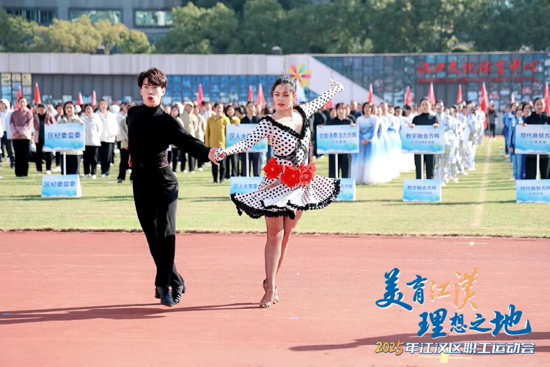本屆運動會,由73家單位組成的59支隊伍,伴隨著激昂的運動員進行曲,五大特色方陣率先登場。紅色領航方陣高舉信仰之旗,彰顯江漢干部職工在黨的引領下凝心聚力、共謀發(fā)展;金融強區(qū)方陣踏出資本市場的節(jié)奏與力量,譜寫“千億基金,助力江漢”的現(xiàn)實圖景;數(shù)字融合方陣身著銀色未來裝,手持平板佩戴AR眼鏡,演繹“智轉數(shù)改”的科技動能;文旅消費活力方陣舞出都市商圈的熱鬧繁華、文旅街區(qū)的獨特韻味與街頭巷尾的裊裊煙火;現(xiàn)代商貿方陣全員藍色工裝,通過舞劇展現(xiàn)拼搏實干的江漢物流人建設商貿物流核心區(qū)的決心與奮斗力量!其余各代表隊也邁著矯健步伐整齊入場,或用精編節(jié)目博得喝彩,或以嘹亮口號響徹會場。