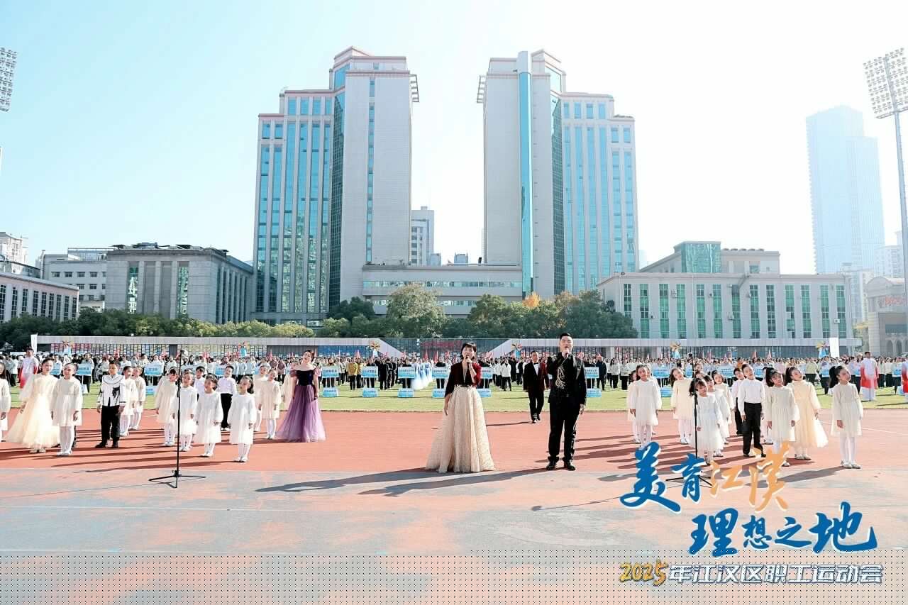 文藝演出環(huán)節(jié)同樣精彩紛呈。開(kāi)場(chǎng)舞《美麗中國(guó)》以熱情舞步禮贊祖國(guó);體育舞蹈《躍動(dòng)未來(lái)》上演力量與美的碰撞;《活力江漢》歌曲串燒中,小歌手彭彥凱與武漢天使童聲合唱團(tuán)帶來(lái)動(dòng)人演唱,職工歌手聯(lián)袂獻(xiàn)唱《江漢四季》《相親相愛(ài)》,引發(fā)全場(chǎng)共鳴;千人工間操展演氣勢(shì)恢宏,全場(chǎng)配合呈現(xiàn)“I?JH”巨型畫(huà)面,將開(kāi)幕式推向高潮。