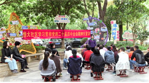 社區(qū)黨委堅持把理論武裝擺在首位,著力構(gòu)建立體化宣講矩陣。創(chuàng)新打造“綠洲樹下”“小亭議事”“周三有約”等特色微陣地,充分發(fā)揮“社區(qū)合伙人”中老黨員、退伍老兵、先進模范等榜樣力量的核心作用,組建“紅色宣講團”。宣講團成員化身“草根講師”,走出會議室,深入綠蔭下、小亭中,以百姓視角、武漢方言、拉家常方式,生動解讀二十屆四中全會精神等理論及最新政策,使黨的聲音更鮮活、更可感。在“潤物有聲”的微課堂里,居民圍坐探討、邊聽邊議、有問有答,實現(xiàn)了理論學習“零距離”、思想傳播“接地氣”。同步開展“治理金點子”征集活動,引導(dǎo)居民將學習成果轉(zhuǎn)化為參與社區(qū)治理的實際行動,圍繞公共事務(wù)、環(huán)境整治、鄰里互助等議題積極建言獻策,累計收集有效建議100余條。