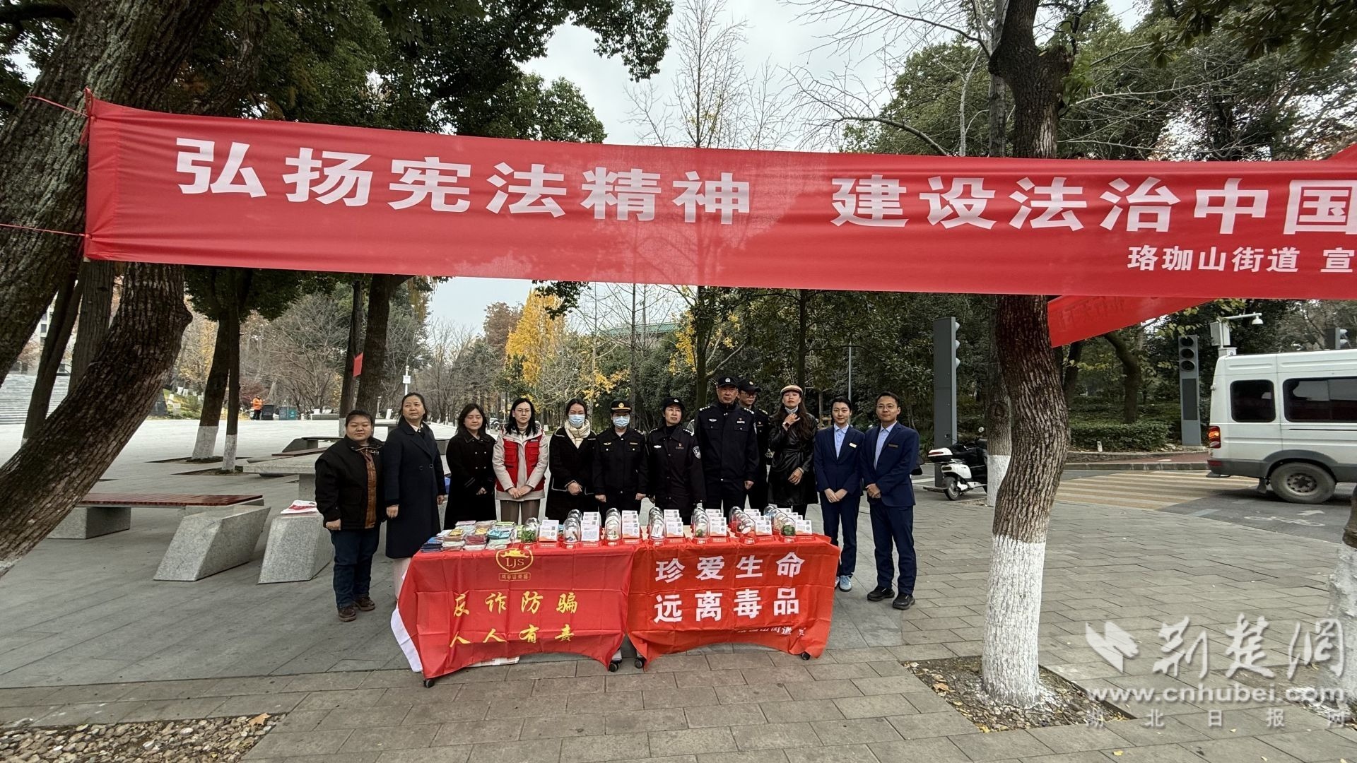 荊楚網(wǎng)(湖北日報網(wǎng))訊(通訊員 方茜)12月4日,武昌區(qū)珞珈山街道聯(lián)合武漢大學(xué)保衛(wèi)部、轄區(qū)派出所、司法所、執(zhí)法隊等多部門,在武漢大學(xué)萬林藝術(shù)博物館門前舉辦“憲法宣傳周”暨國家憲法日集中宣傳活動。本次活動以“憲法守護(hù)健康權(quán),禁毒筑牢生命線”為主題,旨在弘揚憲法精神,增強全民法治觀念,同時深化禁毒宣傳教育,筑牢校園與社會禁毒防線。