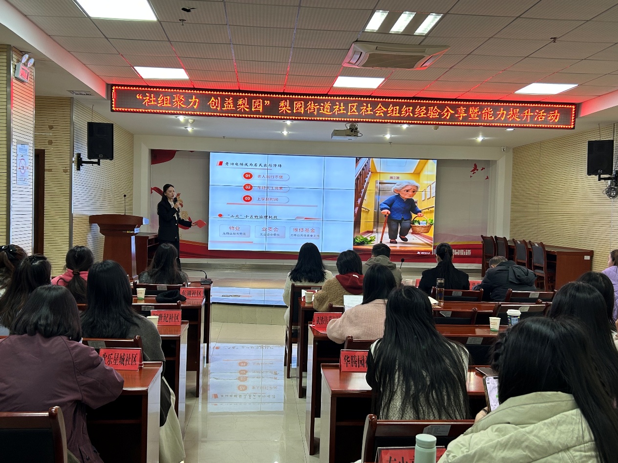 隨后,活動進(jìn)入了最核心的案例匯報環(huán)節(jié)。在近兩個小時的時間里,來自梨園街道10個社區(qū)的優(yōu)秀社會組織代表輪番登臺,分享了他們在養(yǎng)老助老、婦女兒童關(guān)愛、文化體育及社區(qū)教育等領(lǐng)域的探索與實踐。