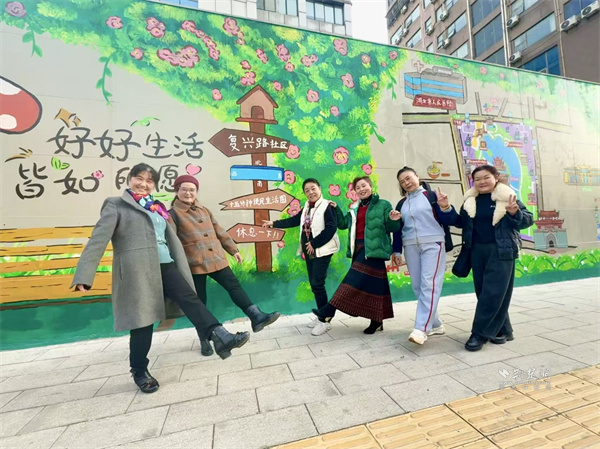 “復(fù)興時(shí)光里”特色手繪墻成現(xiàn)場(chǎng)打卡熱點(diǎn),墻上不僅繪有社區(qū)特色地圖與“十五分鐘生活圈”元素,還承載著居民的共同記憶,為社區(qū)文化建設(shè)添上靚麗一筆,成了鄰里溫情與社區(qū)活力的見(jiàn)證。