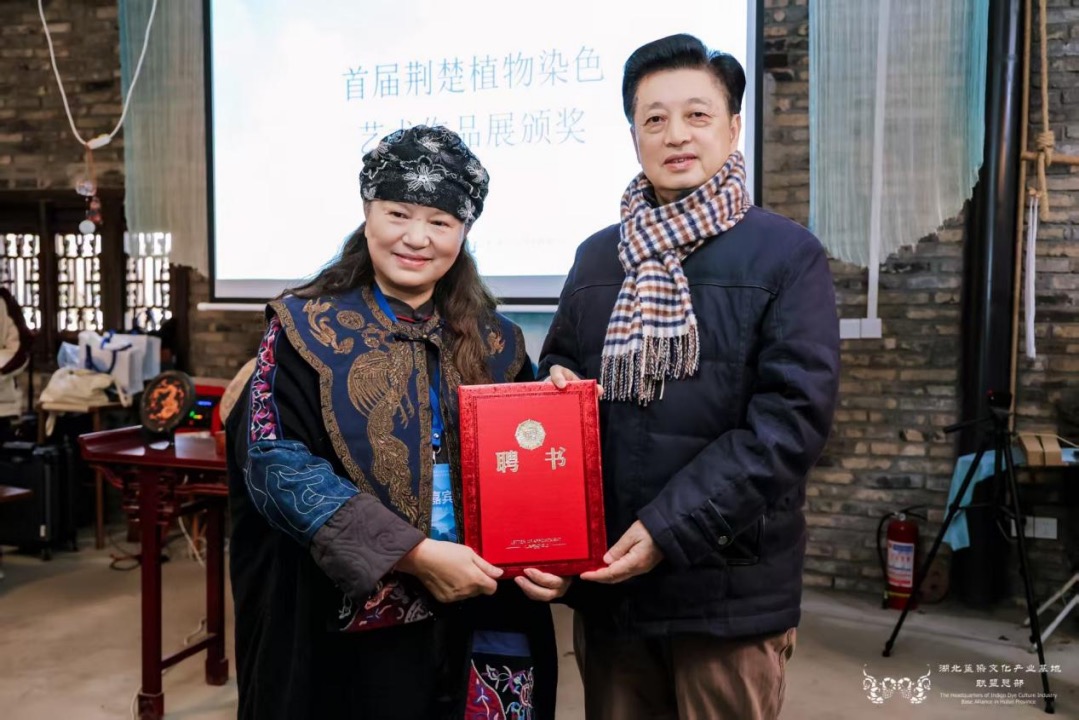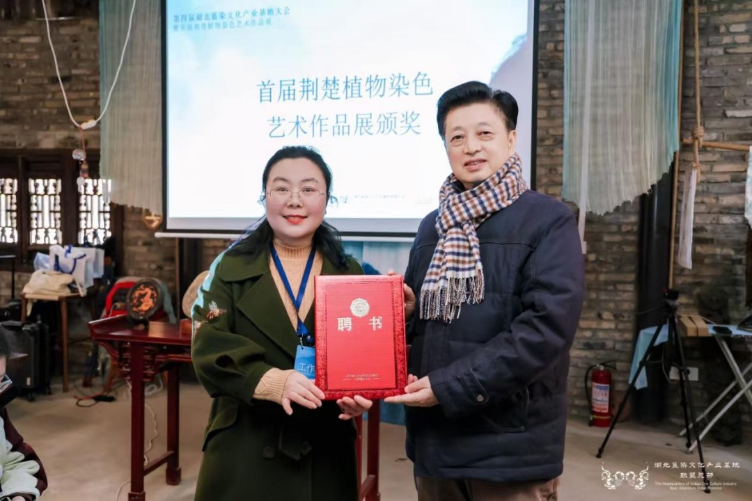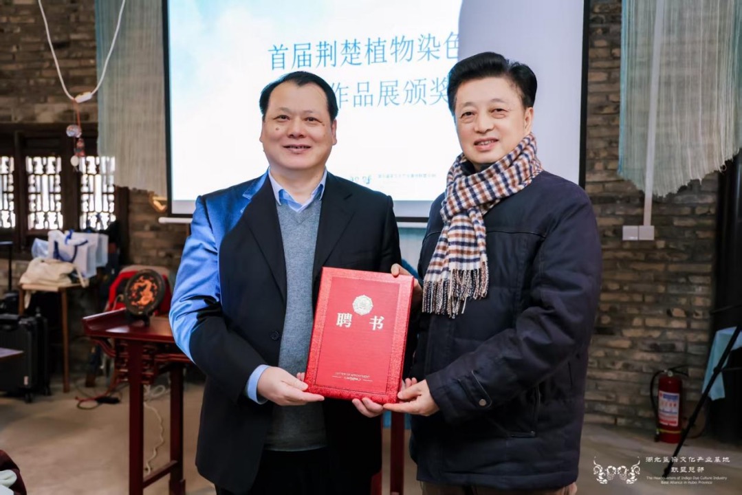 此外,大會還為黃石和辰草木染、小朱灣田肆集非遺工坊兩家新晉基地授牌,并為陳小蓮傳承人工作室設立的研究生工作站揭牌。孫傳明主席在致辭中表示,當前,湖北省委、省政府正大力加強荊楚文化資源保護和推動文化創(chuàng)新發(fā)展,以系統(tǒng)性舉措整體提升支點的文化影響力。產業(yè)聯(lián)盟也將持續(xù)搭建產學研協(xié)同創(chuàng)新平臺,推動植物染技藝與現(xiàn)代科技、設計、市場深度融合,并積極履行社會責任,為文化強省建設和人民美好生活貢獻聯(lián)盟的智慧與力量。會議由華中師范大學研究員、湖北藍染文化產業(yè)基地聯(lián)盟副主席石煒主持。