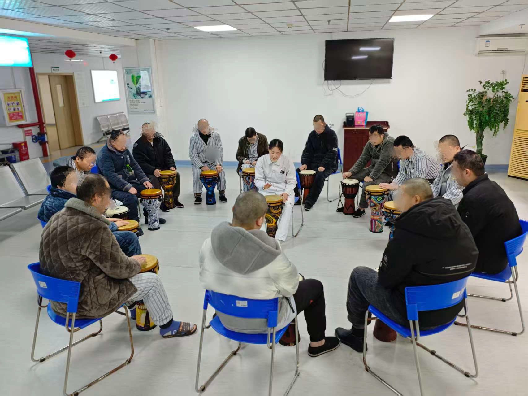“鼓圈就像一個(gè)包容又充滿力量的‘聯(lián)結(jié)圈’,我在鼓點(diǎn)的共振中釋放了積壓的壓力,情緒也得到了有效舒緩。跟著治療師的動(dòng)作節(jié)奏,心慢慢沉進(jìn)當(dāng)下的節(jié)拍里,真切體會(huì)到了‘同頻’的默契,特別踏實(shí)安心?!?一位患者在活動(dòng)后真誠(chéng)分享。這種沉浸式的參與體驗(yàn),能夠有效喚醒患者的內(nèi)在動(dòng)力,助力他們?cè)谧灾髡瓶氐墓?jié)奏中實(shí)現(xiàn)心理調(diào)適與社會(huì)功能修復(fù)?;颊邆?cè)谶@場(chǎng)節(jié)奏互動(dòng)中,不僅感知到聽(tīng)覺(jué)、觸覺(jué)、視覺(jué)的多維聯(lián)動(dòng),更在“即興創(chuàng)作”與“節(jié)奏共鳴”中,尋得情緒疏解的有效出口,自信心與自我認(rèn)同感也得到了顯著提升。
