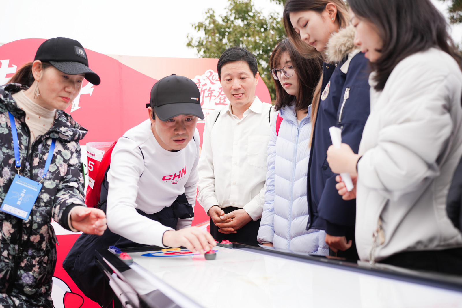 選手體驗(yàn)桌上冰壺、好運(yùn)投壺等活動(dòng)