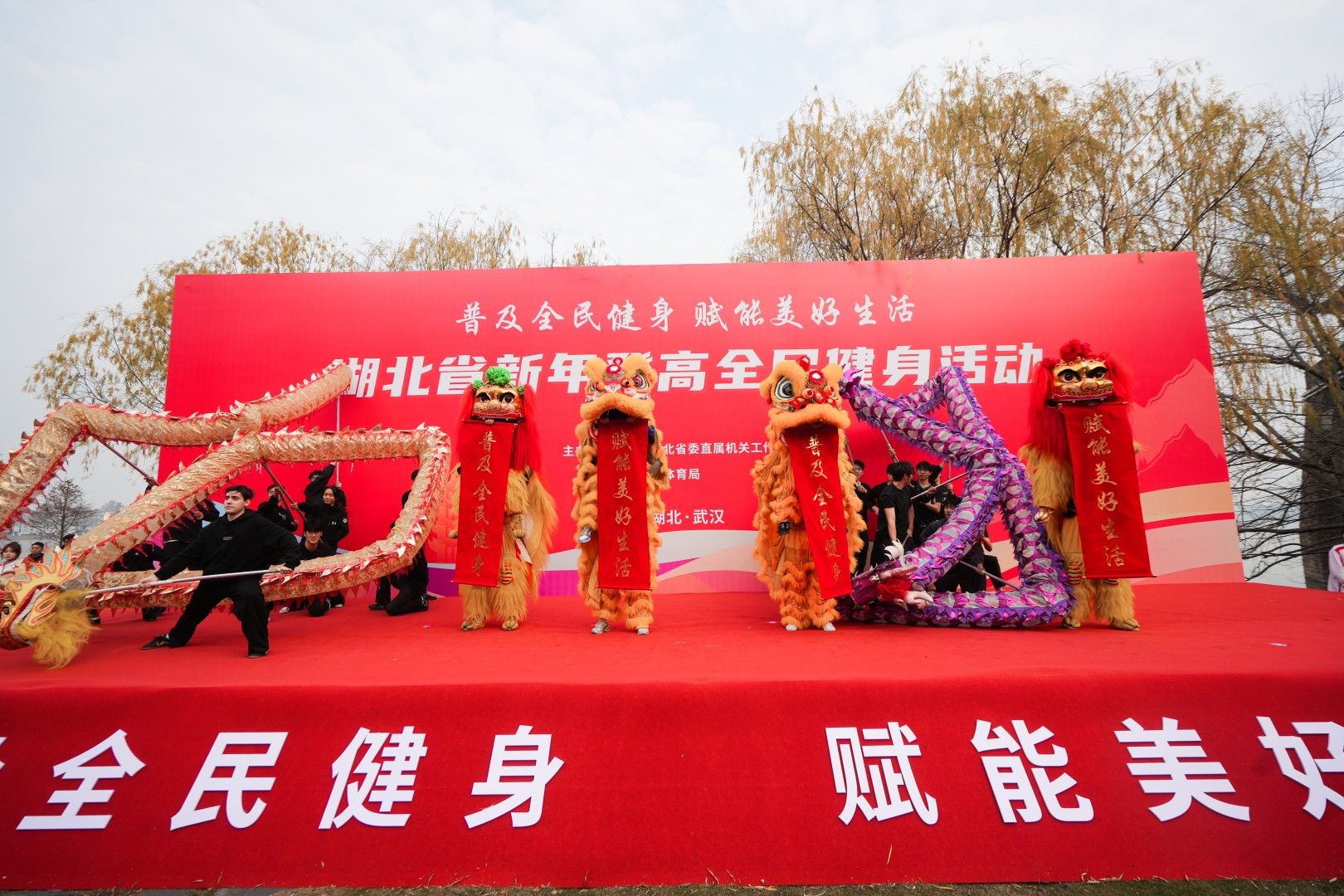 啟動(dòng)儀式在青春活力的氛圍中拉開帷幕。武漢體育學(xué)院的啦啦操表演展現(xiàn)了新時(shí)代青年蓬勃向上的精神風(fēng)貌。武漢理工大學(xué)帶來的太極拳及武術(shù)表演盡顯中華傳統(tǒng)體育文化魅力;智能機(jī)器人登臺(tái)起舞,以精準(zhǔn)動(dòng)感的舞姿展現(xiàn)科技與運(yùn)動(dòng)的創(chuàng)新融合,隨后更化身“科技領(lǐng)操員”,與健身教練協(xié)同帶領(lǐng)全場(chǎng)熱身,生動(dòng)演繹了人機(jī)協(xié)作的智能健身場(chǎng)景。湖北大學(xué)舞龍舞獅隊(duì)壓軸登場(chǎng),精湛技藝將現(xiàn)場(chǎng)氣氛推向高潮。活動(dòng)現(xiàn)場(chǎng),第十五屆全國(guó)運(yùn)動(dòng)會(huì)男子100米、男子4×100米接力冠軍李澤洋發(fā)出全民健身倡議,“用體育鍛煉點(diǎn)亮生活,為支點(diǎn)湖北建設(shè)注入全民健身力量?!?/p>