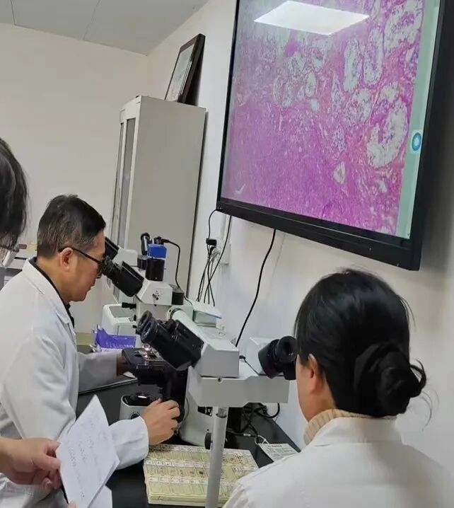 手術(shù)當(dāng)日,當(dāng)“雙側(cè)甲狀腺及中央?yún)^(qū)淋巴結(jié)”標(biāo)本經(jīng)專用通道送達(dá)東城院區(qū)病理科后,一場(chǎng)與生命賽跑的“30分鐘戰(zhàn)役”正式打響。病理科團(tuán)隊(duì)嚴(yán)格遵循規(guī)范流程,快速完成標(biāo)本處理、切片制作、染色觀察等系列操作,最終由病理科主任醫(yī)師在顯微鏡下精準(zhǔn)研判,按時(shí)出具診斷報(bào)告,為臨床手術(shù)方案的實(shí)時(shí)調(diào)整提供了核心依據(jù)。