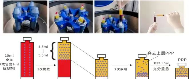 ①通過(guò)抽取患者自體血液,利用離心機(jī)分層后人工提取PRP。
